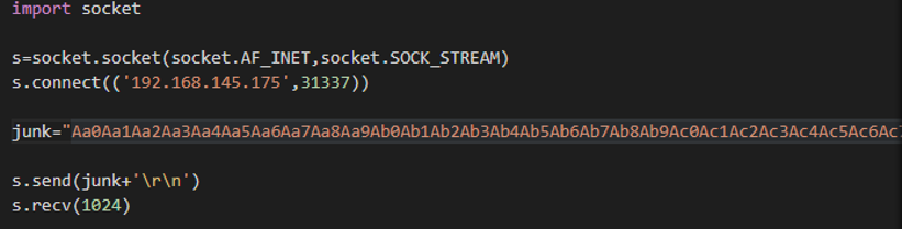 6. Ensure that the EIP has been overwritten by the character located in 146 by modifying the four characters in the 146th position with the character “B”. In this tutorial, the script used is named check.py.